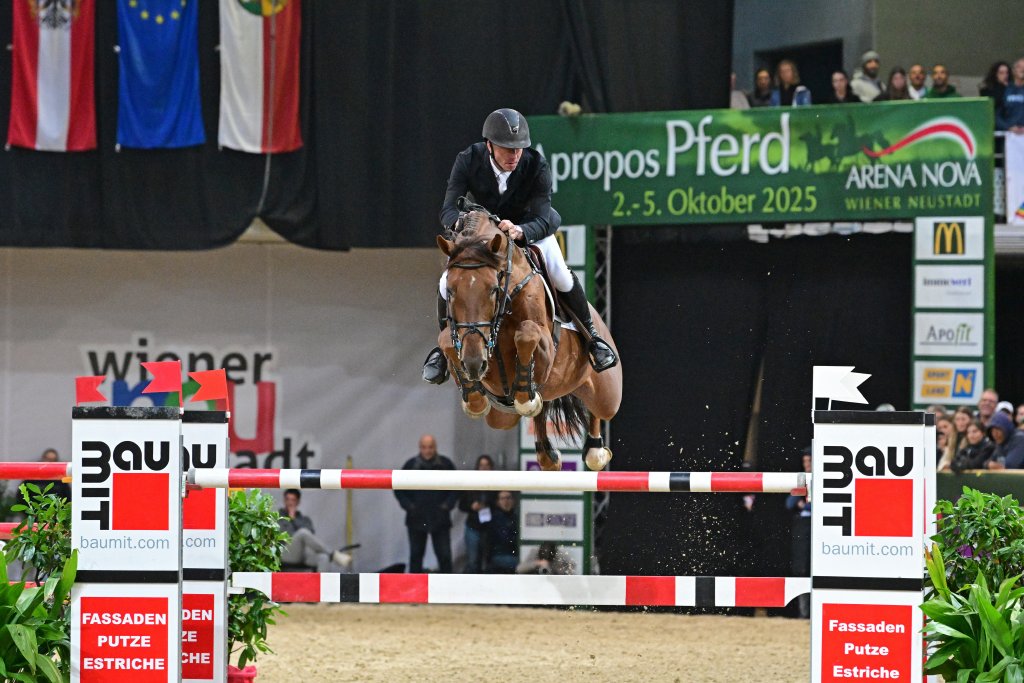 Vor vollen Rängen startete am Samstagabend (03.10.2025) pünktlich um 18.30 das Hauptspringen der CSI3-Stern-Tour über 145cm. 39 Paare hatten sich in die Startliste vom mit 28.200 Euro dotierten Silber Tour Finale eingetragen. Das Weltranglistenspringen um den Preis der Theresianischen Militärakademie wurde in einem Sechserstechen entschieden.